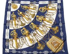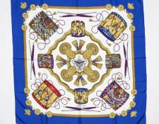 | 278 | Hermes | Scarf | Royal Blue/Red/Gold | 100% Twill Silk | “1798” | AA | ||