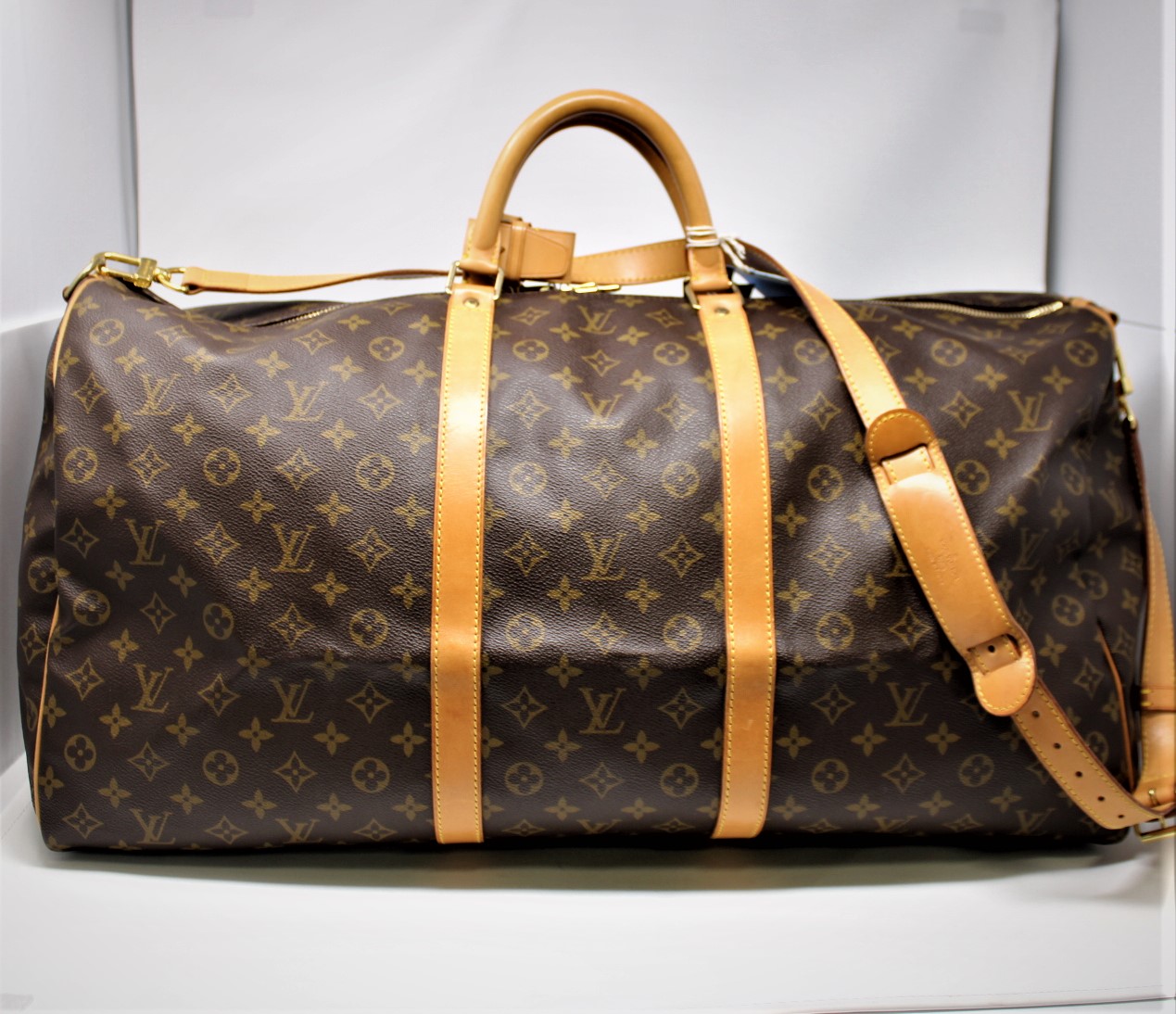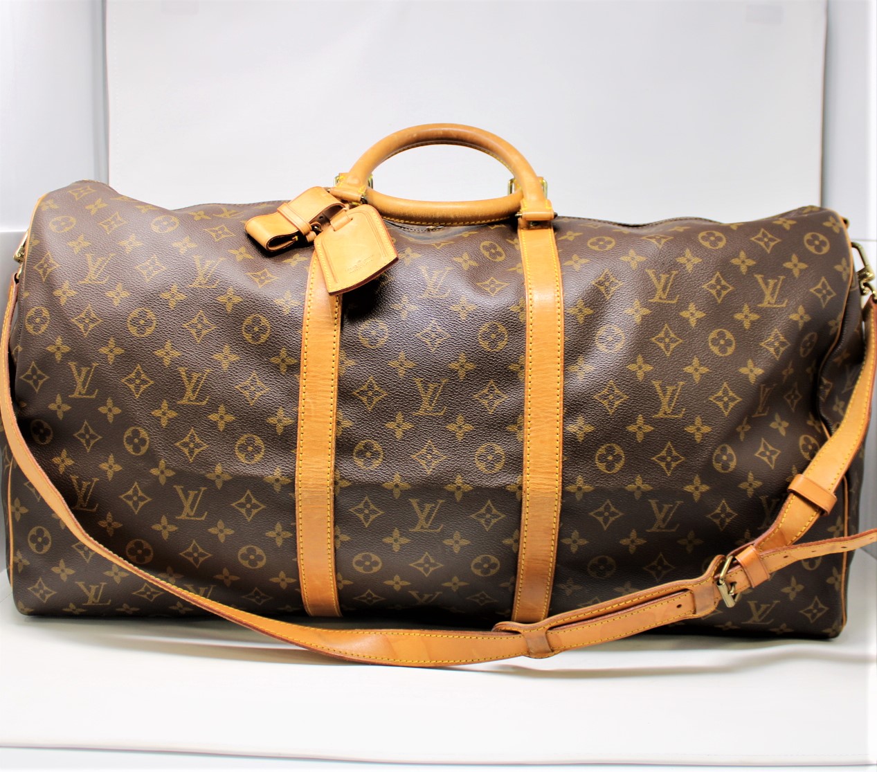 | 361 | Louis Vuitton | Keepall Bandouliere | 60 | Brown | Monogram Canvas | 883FC | Strap, Luggage Tag, Handle Strap | B |
