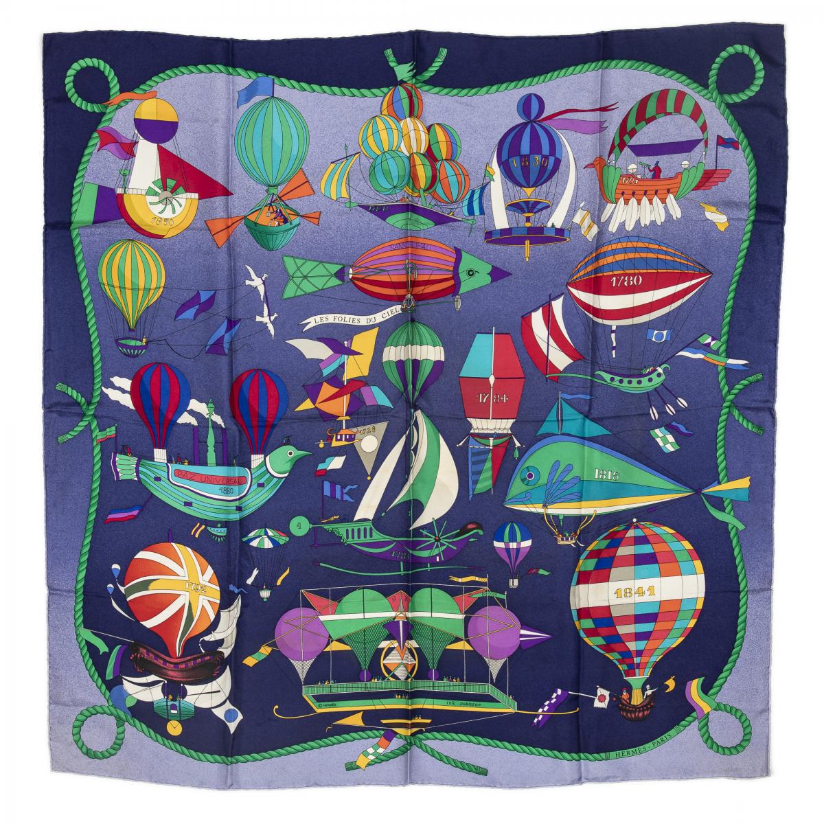 | 276 | Hermes | Scarf | Dark Blue/Green/Purple | 100% Twill Silk | “Les Folies du Ciel” by Loïc Dubigeon | A | ||