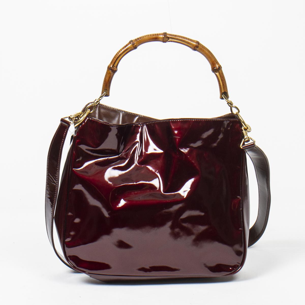 | 45 | Gucci | Bamboo Handle Shoulder Tote | Amarante | Patent Leather | 001/17051/638 | Dustbag | AB | |