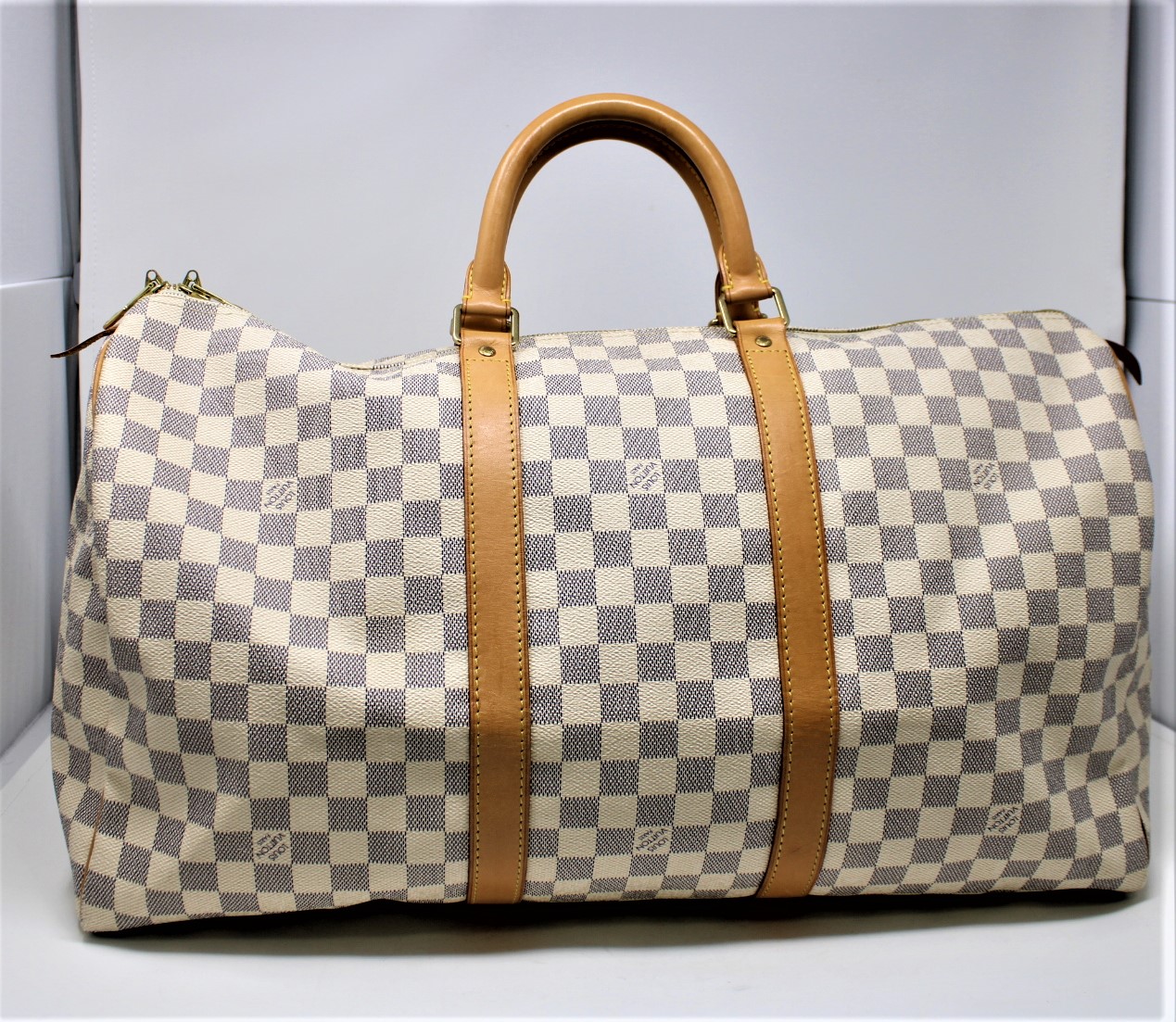 | 74 | Louis Vuitton | Keepall | 50 | Ivory | Damier Azur | MB1077 | A | |
